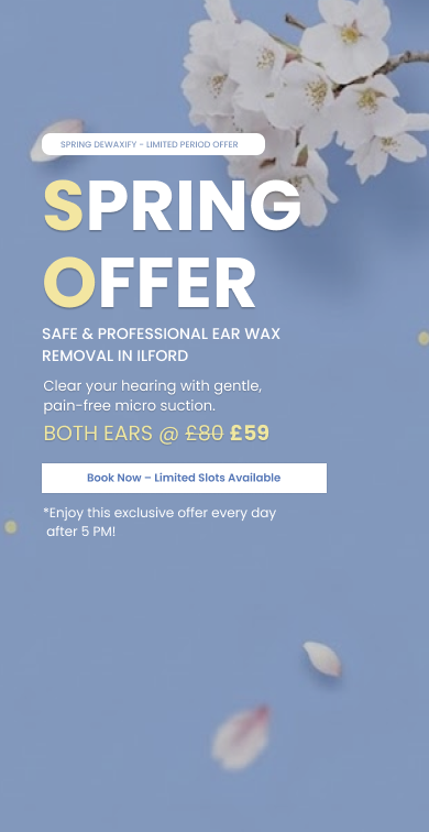 Vasilica Toma Found appointment on the same day,had a positive experience and my problem was very quickly resolved. Definitely recommend this place! 5 🌟 from me! Emanuil Minev this is my second time using Dewaxify and i must say its wonderful. ive had really plugged up ears and could hardly hear. once my ears were unblocked it was a whole new experience out in the world. couldnt recommend it more for anyone struggling with wax build-up problems. AP Developments Very good customer service. Fast and efficient. Seen same day shortly after calling up. Omar Mohamed Absolutely amazing service, instant relief would definitely recommend. Kerry Roche Absolutely brilliant the ladies were very friendly and welcoming and going from not being able to hear to hearing everything is amazing will definitely refer friends and family Olga Swierczynska Bylam dzisiaj pierwszy raz na Redbridge.mam doświadczenie w innych punktach przez 4 lata jeśli chodzi o czyszczenie uszu.uwiezcie jeszcze tak dokladnie niegdy nie miałam wyczyszczone .80. F ale warto wydać te pieniądze.Mlodziutka dziewczyna pomocna dokładna i delikatna.Naprawde polecam.Milego dnia Jeniffer Had a lovely experience at this clinic! Sita was absolutely lovely & reassuring during the whole process, and made me feel a lot more at ease! 100% recommend! Lauren Fernandes I’ve been going to Dewaxify for over a year or so and it’s the best place to get your ears cleaned! Sita is so gentle and always makes sure you’re feeling comfortable. She’s also been super understanding when I had a blocked ear and was able to make a quick emergency appointment! Simran Wadhwani Sita is absolutely brilliant and so informative when consulting. Always gentle and understanding during the appointment. I always come back for a good clear out when needed and receive tips from Sita on how best to look after our ears. Definitely recommend!Google rating score: 4.9 of 5, based on 240 reviews