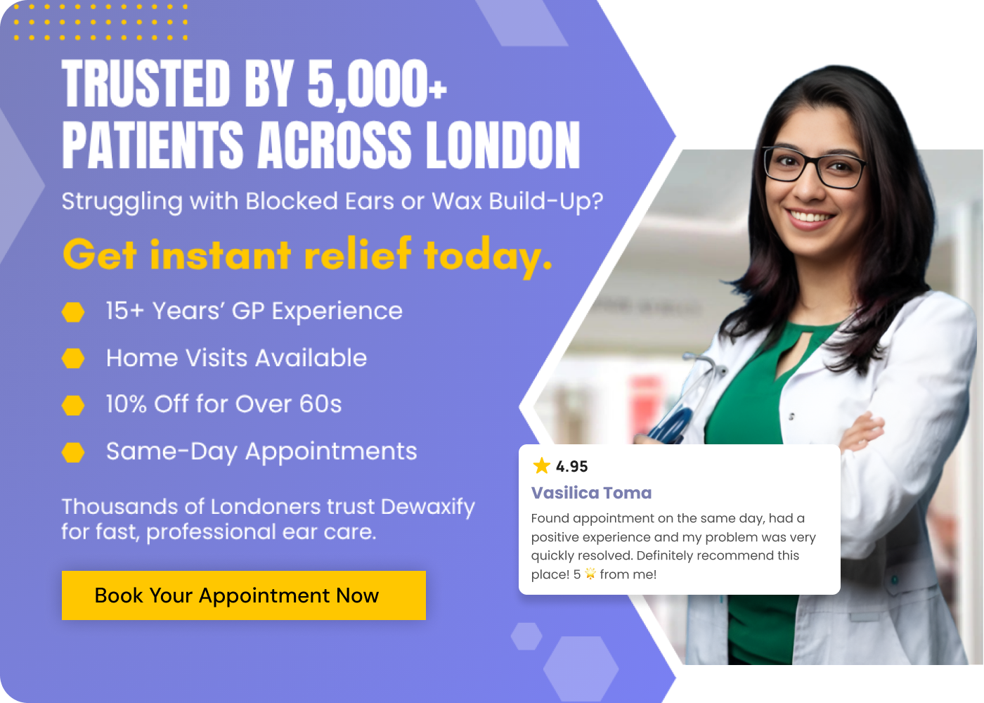 If you’d like to try managing ear wax yourself, follow the safe steps above but always stop immediately if you feel pain, dizziness, or notice any discharge. For professional care, Dewaxify offers expert ear wax removal in Ilford with same-day appointments available. Visit our Home page to book your slot and enjoy clearer, healthier hearing.