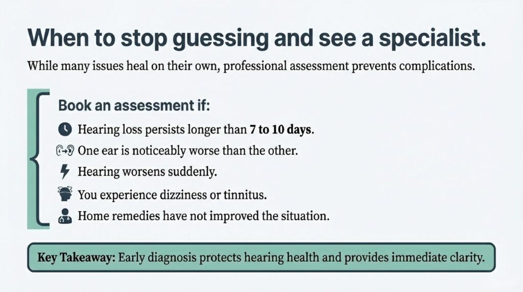 Early advice prevents unnecessary worry and protects hearing health.